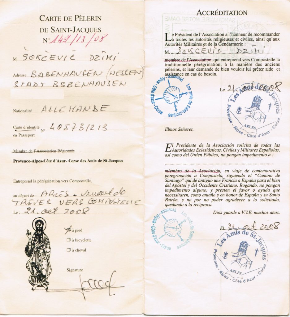 Den Jakobsweg habe ich neuerlich ab Avignon fortgesetzt (2021) mit Stand Etappe 4 von 5 noch ca. 198 km bis Santiago de Compostela.
