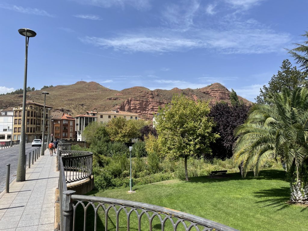 Einmarsch in Nájera mit Blick auf das Gipfelkreuz