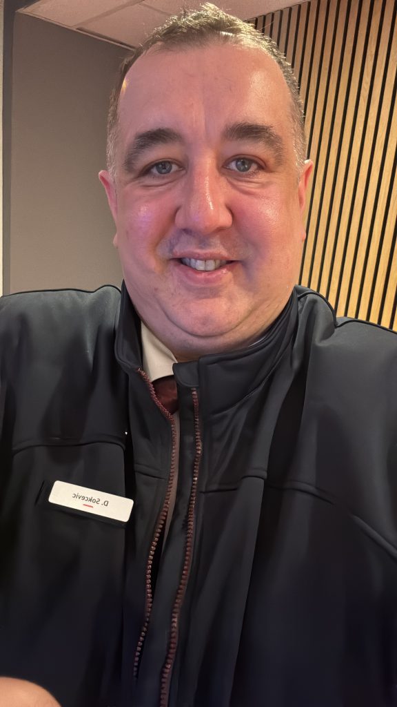 Dzimi auf der Arbeit im Pausenraum (Selfie) im April 2025 mit 62kg Gewichtsreduktion