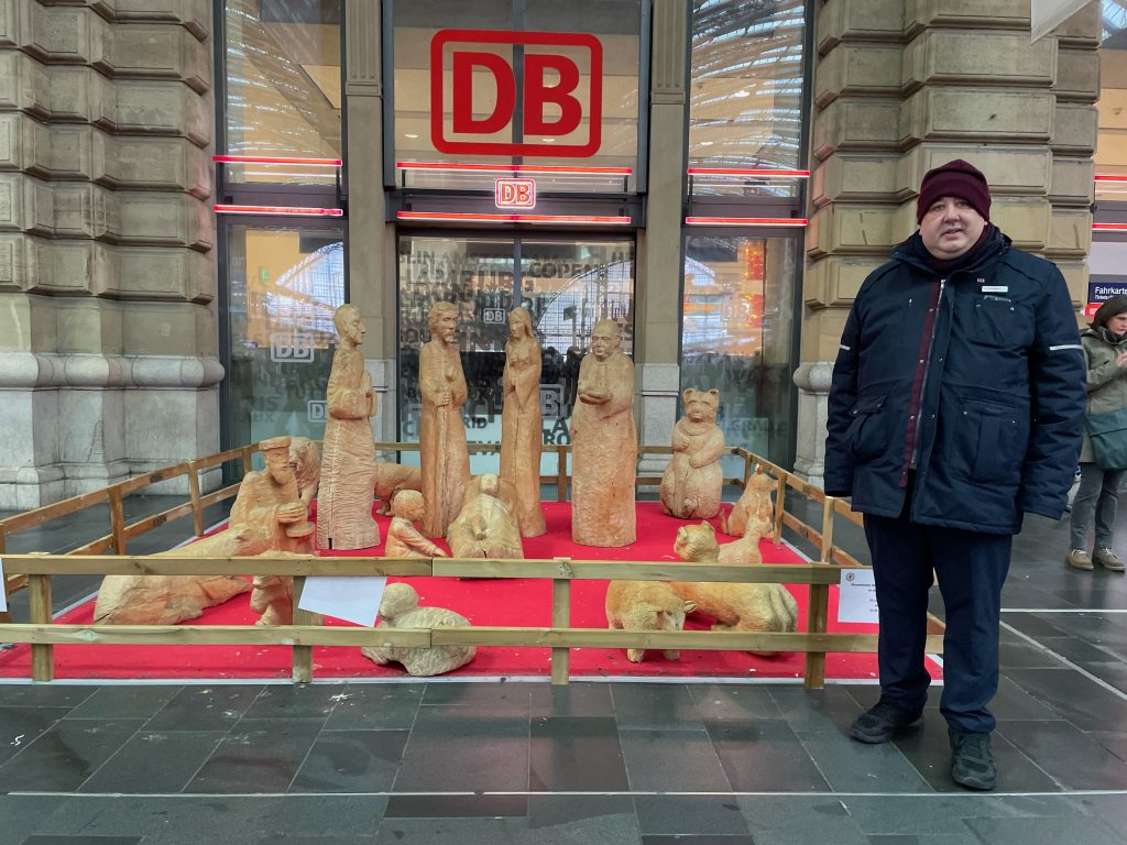 Dzimi vor der Weihnachtskrippe am HBF in Frankfurt (2023) mit mehr als 45kg Gewichtsreduktion!